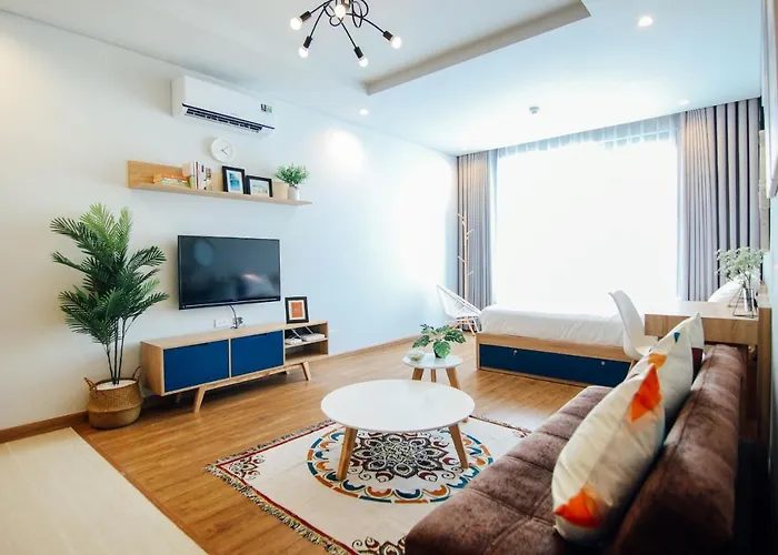 May House Green Bay Garden Ha Long - Near Marina Beach is at a distance of 3.1 km from Castaway Island and provides spa facilities such as an indoor pool. The vast Thien Cung Cave is located about 6 km away and Cat Bi International airport is located 45 km from the beachfront apartment.